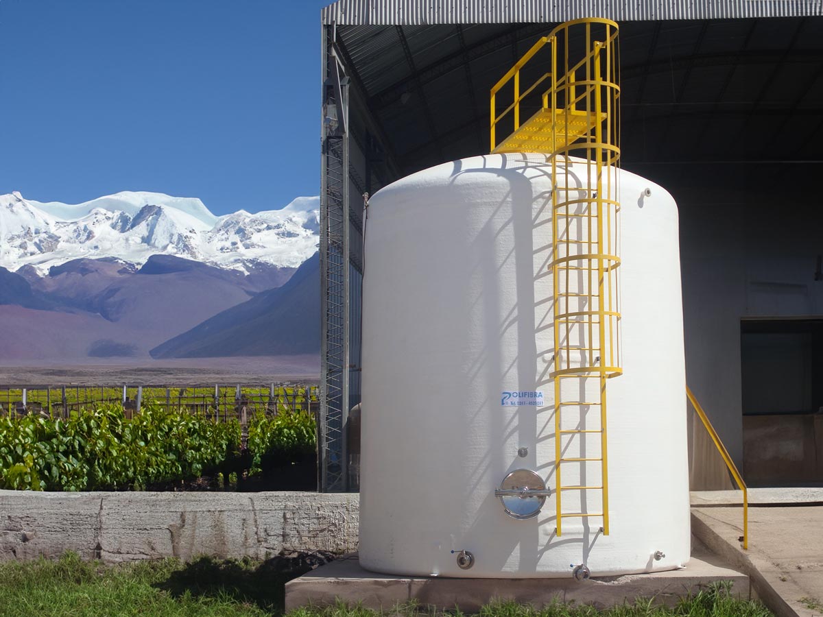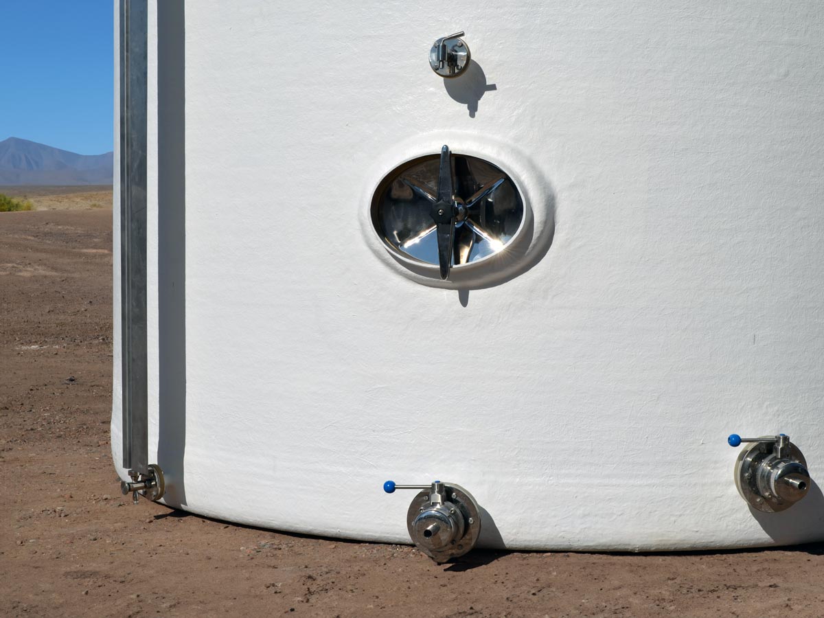 Utilizamos resinas poliéster de alta resistencia química aprobadas por el I.N.A.L. y SENASA, libres de ftalatos, lo que garantiza un almacenamiento seguro de vino y aceite. Las fibras de vidrio intercaladas mono, bi y multidireccionales aseguran resistencia mecánica, mientras que el exterior está recubierto con gel-coat pigmentado y filtros U.V. para protección adicional. Para el uso enológico, nuestros tanques son arenados internamente y revestidos con epoxi sin solvente aprobado por el INV.